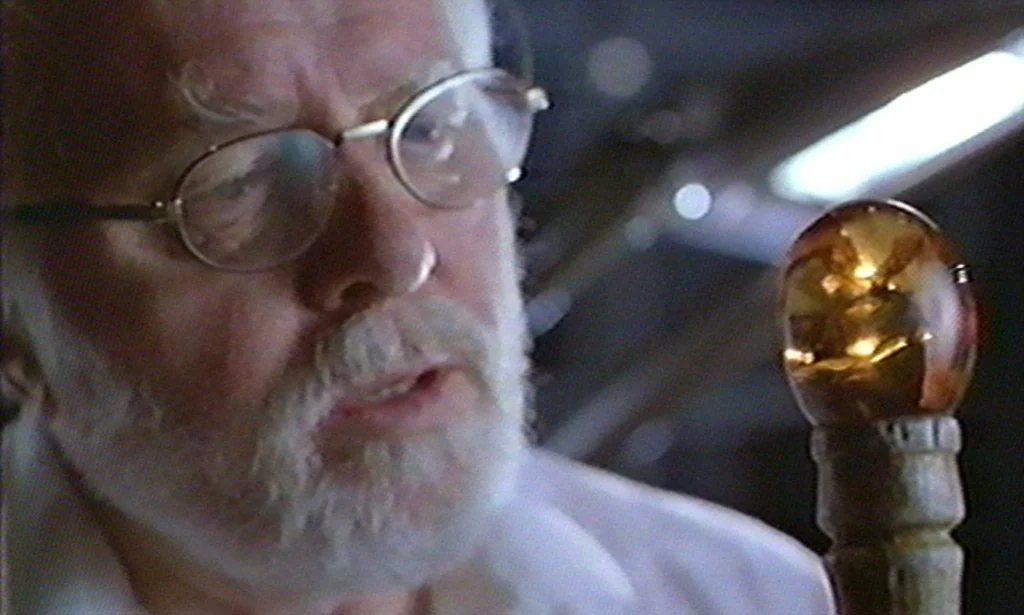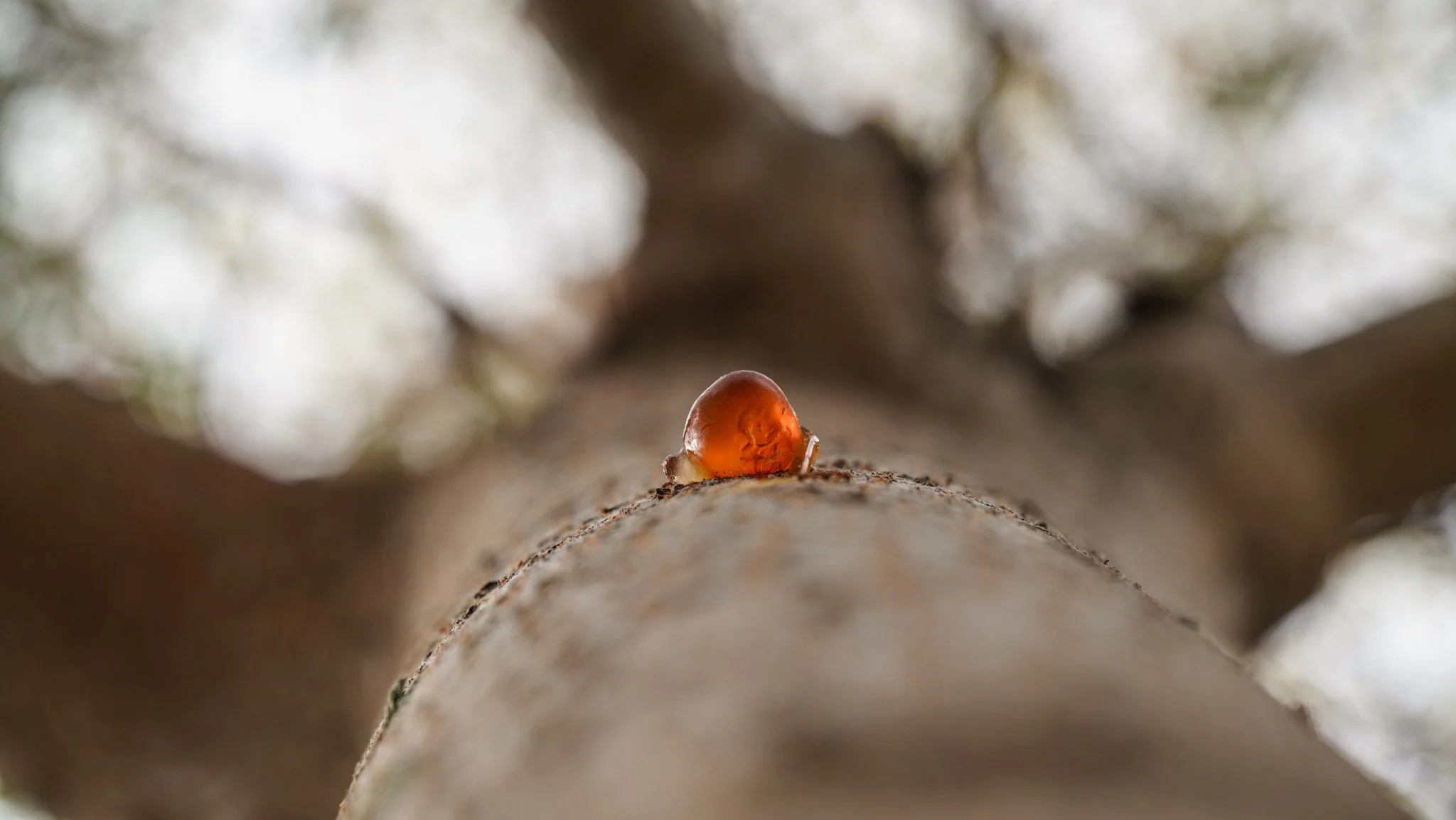 A scene from Jurassic Park where a mosquito is frozen inside amber.